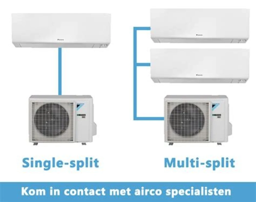 Een single split airco bestaat uit één binnenunit en één buitenunit, terwijl bij een multi split airco meerdere binnenunits op één buitenunit aangesloten worden.